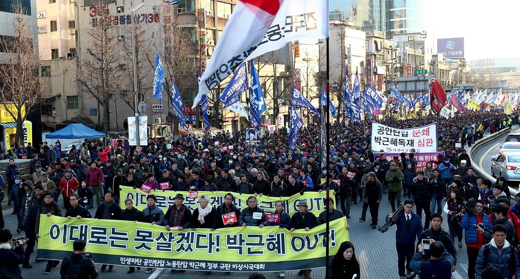 韓国、大規模な反政府デモ、朴槿恵大統領に退陣を要求