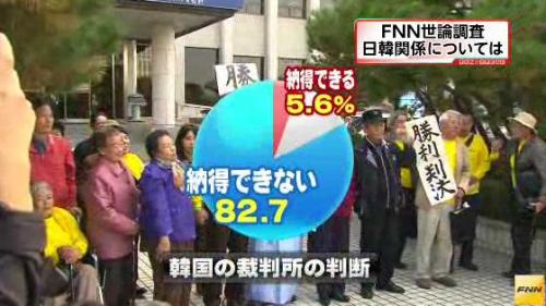 日本のネットユーザーの反応は、大半が「1日も早く国交断絶を」、「朝鮮人はうそつき泥棒」、「フジでこの程度の数字だから、実際はもっと高い」、「韓国は日本に寄生することで成立している国」などと、世論調査の内容を支持するものだった。